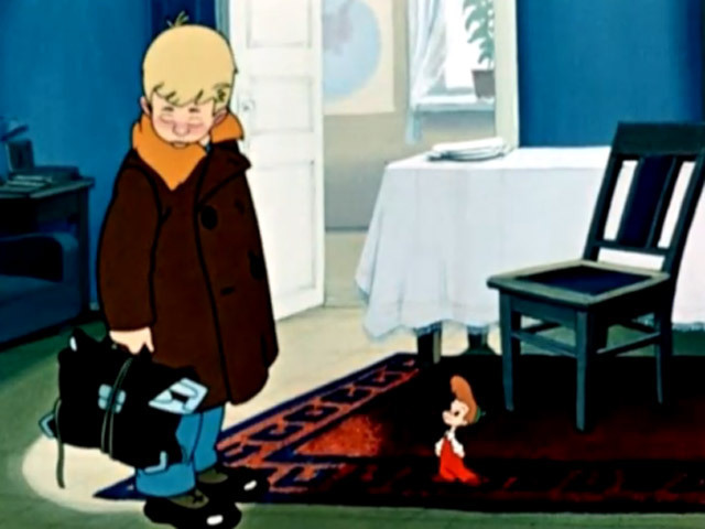 Мурзилка отправляется в известную картину художника Ф. Решетникова «Опять двойка».Режиссеры: Е. Райковский, Б. Степанцев.